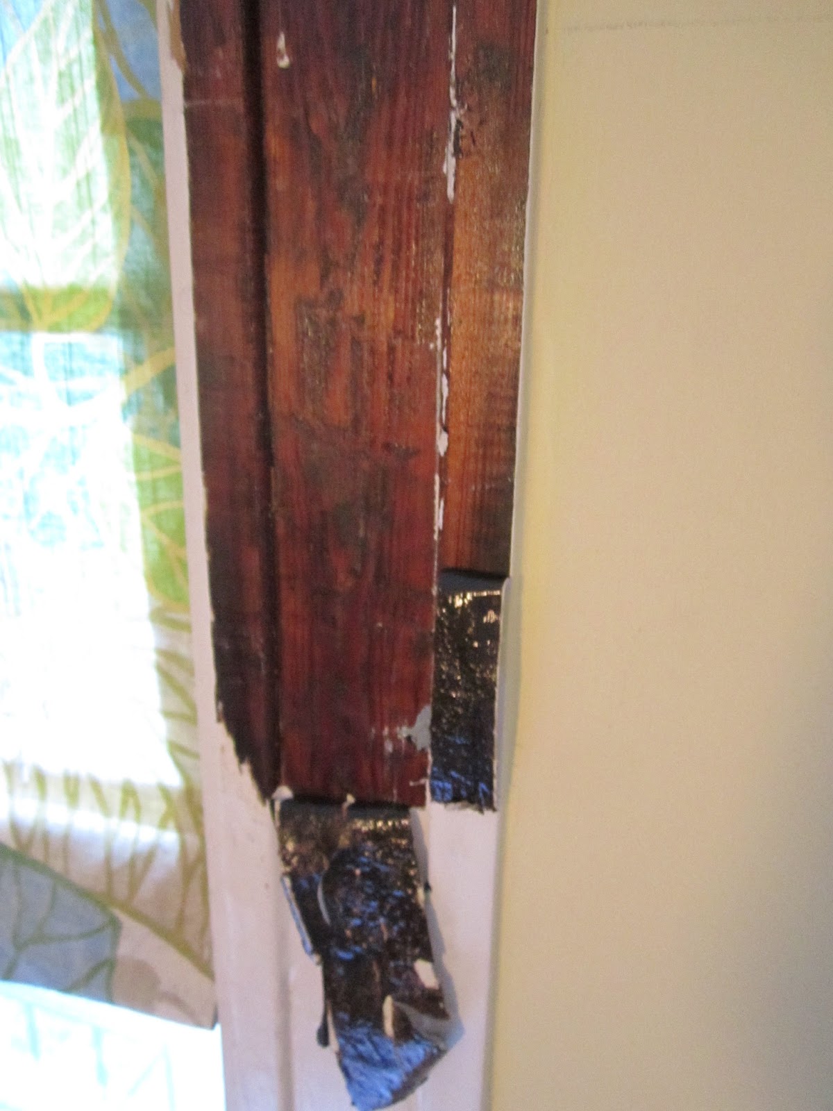 There were a few areas were I expected to unveil serious termite damage haphazardly 'fixed' by copious amounts of glompy wood filler (or caulk ...or tissue paper or ...something. If you talk to my neighbors, people in the past were awfully creative when it came to quick and cheap ...ahem, fixes).